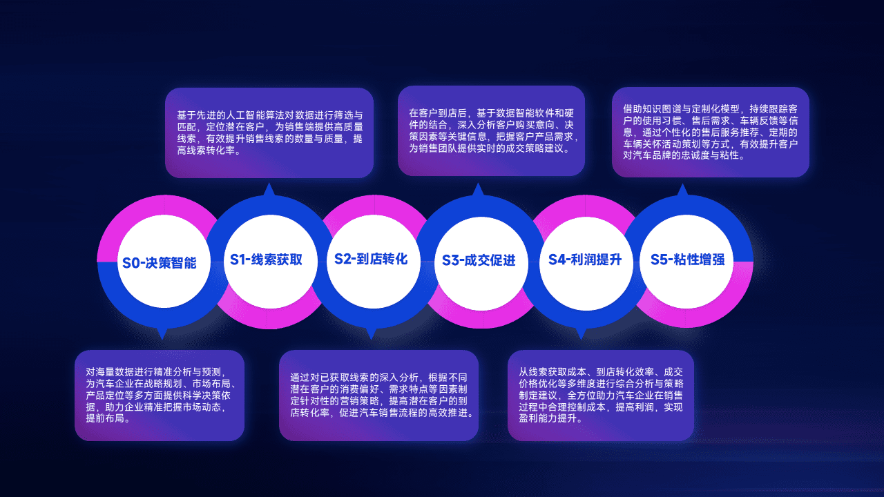 通过拓宽潜在客户来源、、、、优化线索分配并提高到店转化率,,以增强销售效率。。同时,,,利用线索数据不断优化分析模型,,有效提升转化率,,,,扩大营销影响力。。。。